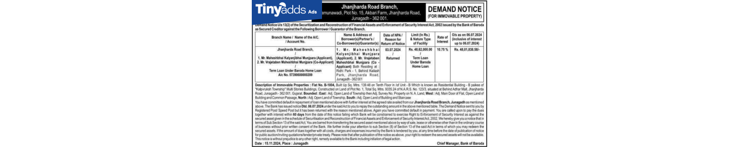 Bank of Baroda DEMAND NOTICE (FOR IMMOVABLE PROPERTY) |